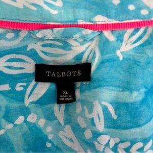 Talbots aqua and white brushed paisley shirt