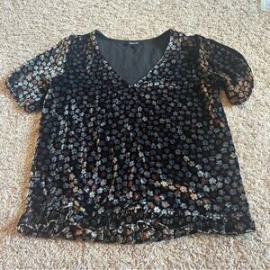 Madewell velvet floral ruffle blouse tshirt