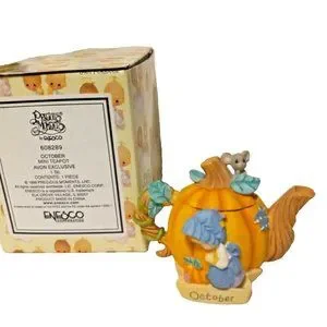 This adorable MINI teapot from the Precious Moments collection by Enesco is the perfect addition to any fall-themed décor. With intricate details and high-quality craftsmanship, this piece is sure to impress collectors and enthusiasts alike. The item number is #608289 and it is in its original box.
