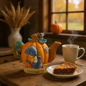PRECIOUS MOMENTS By Enesco-October-Fall Seasonal Mini Teapot Item #608289