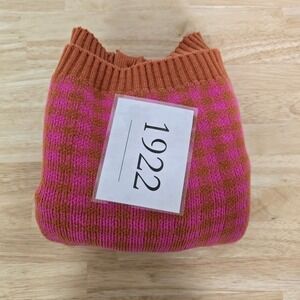 Free People Pink Orange Checkered Cropped Cardigan Sweater Womens Size Medium