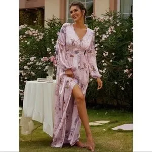 *NWT. Miss Ord Printed Front V Neck Long Sleeve Maxi Dress.