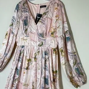 Miss Ord Printed Front V Neck Long Sleeve Maxi Dress. XL. NWT.