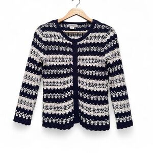 Liz Claiborne Blue White Striped Cottagecore Cardigan Sweater Size Small