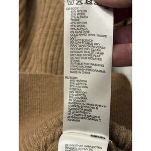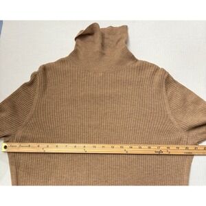 Reiss women's ribbed turtleneck sweater, wool blend, alpaca. Camel color size XL good pre owned condition. See photos for more details and measurements.