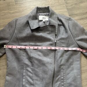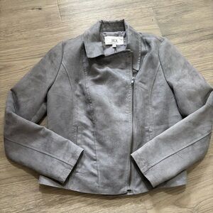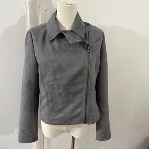 Jack BB Dakota Faux Suede Gray Jacket Asymmetrical Zip Size S Collar