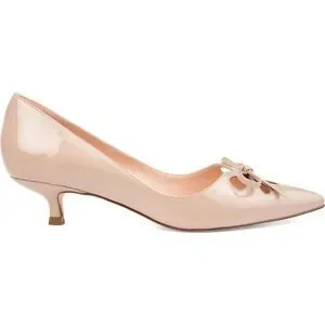 These are pre-owned in excellent condition. I bought them for an event but ended up wearing another pair. Elegant beige kitten heels with a bow accent. Sleek and stylish design. Perfect for any occasion.