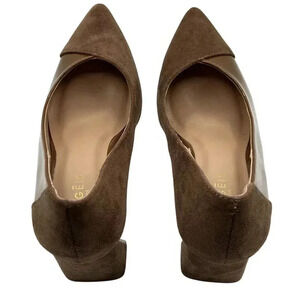 Torgeis NEW Womens Size 7.5 Block Heel Pumps Brown Suede & Patent Leather Pointed Toe Minimalist
