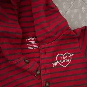 This adorable red striped kids one piece is perfect for keeping your little one cozy and stylish. Featuring a comfortable hood and cute design, it's ideal for everyday wear. Smoke free home