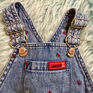 Faded Glory 24M Denim Overalls Cherry Embroidery Cottagecore Y2K