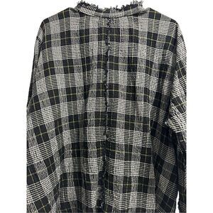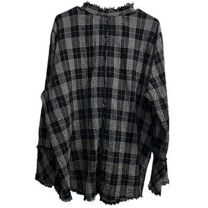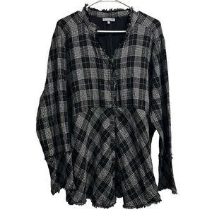 Habitat Cozy Patterned Raw Edge Gauzy Cotton Plaid Tunic Sz.L