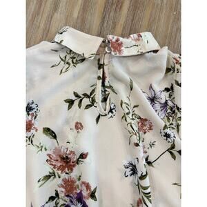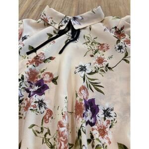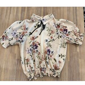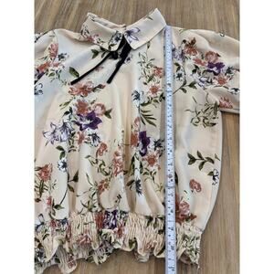 Moa Moa Off White Floral Collared Blouse with Tie Size M