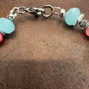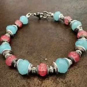 Add a pop of color to your ensemble with this chic 8in bracelet. Featuring vibrant blue crystals and pink crackle quartz beads, it's a stylish accessory for any occasion.