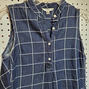 Sophie Max Checked Pattern Dress Size XS Navy White Grid Sleeveless Pockets