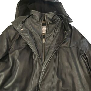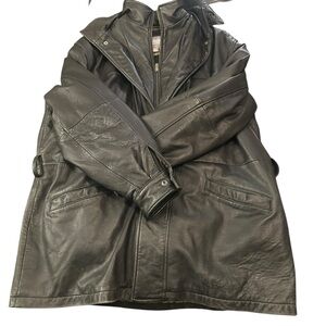Vintage Wilsons Leather Black Insulated Hooded Jacket Size XL