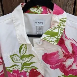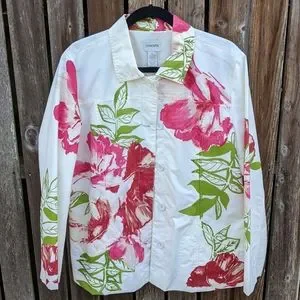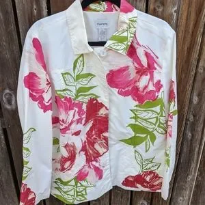 Chico's 3 Jacket Blazer Pink White Watercolor 16