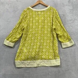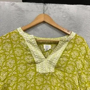 Sigrid Olsen Blouse Womens XL Embroidered Tunic Top 3/4 Sleeve Lime Boho