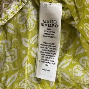 Sigrid Olsen Blouse Womens XL Embroidered Tunic Top 3/4 Sleeve Lime White
