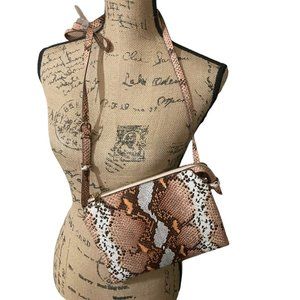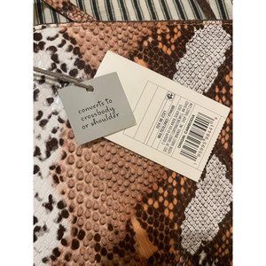 A New Day Snakeskin Print Crossbody Bag. New with tags. Converts to a shoulder bag also. Has three pockets inside. Width 9in. Length 8 in.