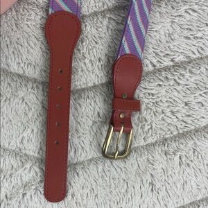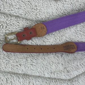 Vintage Purple Striped Fabric Belt Genuine Leather