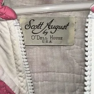 Elevate your wardrobe with this chic quilted jacket featuring a striking geometric design. The blend of cream and red patterns on the front contrasts beautifully with the classic black sleeves. Perfect for adding a touch of elegance to any outfit.