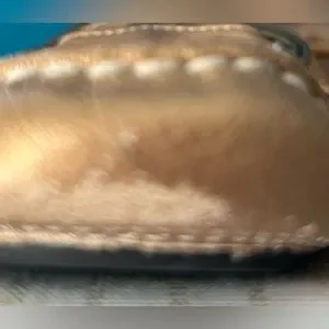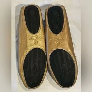 Beautiful Cole Haan golden leather loafers with unique decorative buckle. These have been lovingly worn, but they are still beautiful. The main area of where is in the front lower part of the shoe, which I tried to capture in pictures.