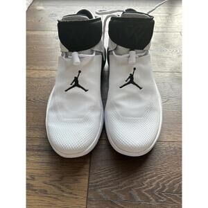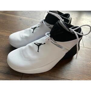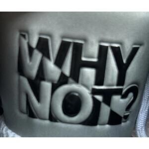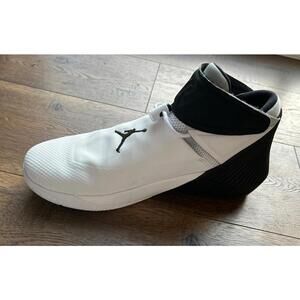 The product is a pair of Nike Air Jordan “Why Not?” sneakers in a size 9.5. These sneakers are designed for flight with a style code of 2510110 and are part of the Nike Air Jordan product line. They feature a mid-top shoe shaft style with adjustable straps, making them suitable for casual occasions and basketball performance. The sneakers are in a color scheme of white and black, with leather and synthetic upper material made in Vietnam. This edition, manufactured in 2017, is not a vintage pair and has not been customized.