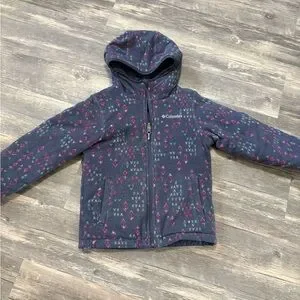 Cozy Columbia fleece jacket. Features a stylish pink and gray design. Perfect for cool weather.