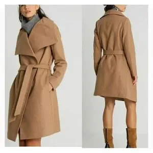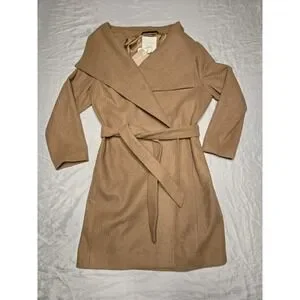 NWT Tom Tailor Denim Womens XL Coat Brown Wool Look Polyester Tie Pockets Luxe