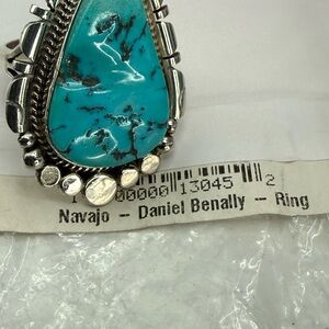 Navajo Sterling Silver Turquoise Statement Ring Sz 8.25 Daniel Benally 12.2 gr.