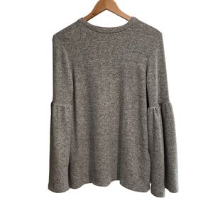 Stylish gray top with bell sleeves. Perfect for versatile wear, size M heather gray crew neck.