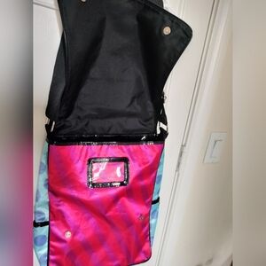 This is such a fun and colorful bag! Rock it this spring.. it will fit your books/notebooks for the park and it is a great talking piece. Gently used condition w some minor wear on the bottom/ wearing of fabric.
