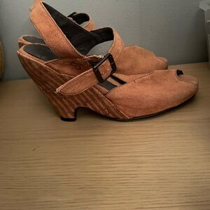 John Fluevog Pindowns Raquel apricot colored wedges size 11.