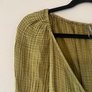Anthropologie Olive Green V-Neck Wrap Long Sleeve Mini Dress Women's size XS