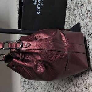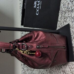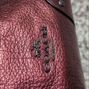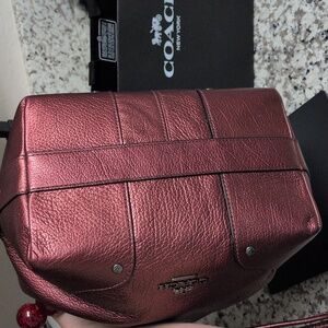 Coach leather bag, Coach purse, red Coach bag, red Coach, metallic, glitter, pebble, pebbled, grain leather, genuine leather, signature, bucket bag, cross body, crossbody, shoulder bag, gallery, tote, Valentine's Day, cherry red