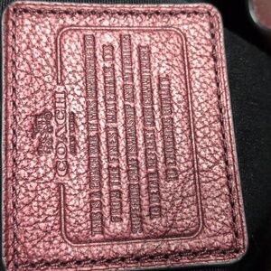 STUNNING 5 piece set! COACH STYLE # F35684 - Mickie Bucket Bag (converts from shoulder bag to crossbody) in full grain red metallic pebble leather, with Signature Jacquard black and silver "C" wristlet/wallet.