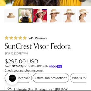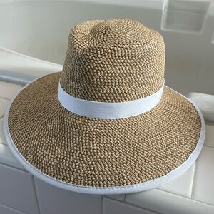 Eric Javits best seller straw hat-SunCrest Visor Fedora in Peanut/White. SPF 50. Very chic and stylish while protecting you from sun. Easily style with any summer outfit
