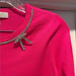 Vibrant pink sweater with sparkling embellishments on the neckline. Elegant and stylish. New without tags, no flaws to note!