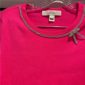 Lilly Pulitzer Pink Sweater with Embellished Neckline