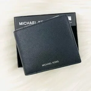 Michael Kors Andy Slim Billfold Wallet Black Saffiano Leather Gift Box