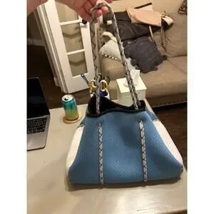 This stylish blue and white tote bag is perfect for everyday use. Its soft, lightweight design makes it comfortable to carry, while the spacious interior provides ample room for your essentials.
