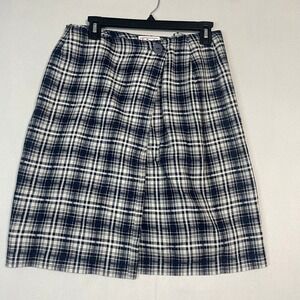 Keywords: Talbots skirt, plaid skirt, wrap skirt, A-line skirt, knee-length skirt, linen blend, classic style, preppy, office wear, casual skirt, fall fashion, timeless, business casual