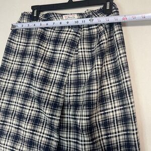 Talbots Women's Plaid Wrap Skirt Black White Linen Blend Knee Length - Size 10