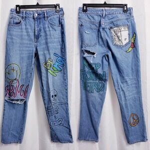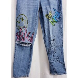 Pacsun Mom Jean Distressed Light Wash Custom Drawstring Jeans Women's size 27