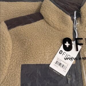 Figs Scrubs On-Shift Color Blocked Sherpa Fleece Jacket Latte/Espresso Small