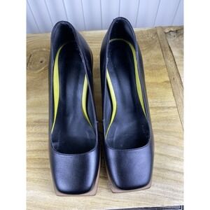 Manolita Womens Leather Shoes US size 6.5 Black Wood Heel Made In Brazil