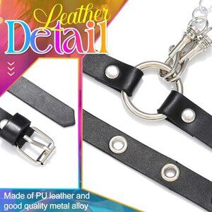 Features: Lightweight and versatile black faux leather waist chain with a punk vibe. Adjustable fit, perfect for adding a edgy touch to dresses, skirts, or low-rise pants. Great for concerts, nightclubs, or carnival looks.