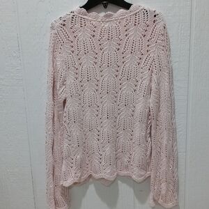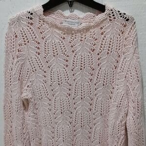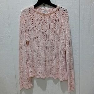 Loose knit crochet sweater beautiful designs and this pink rose petal color sweater.