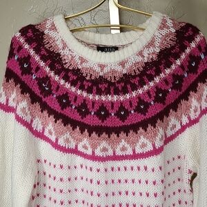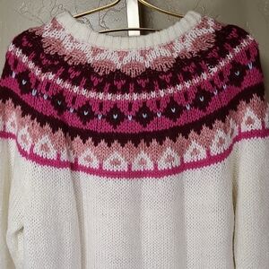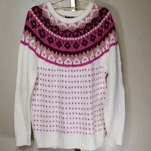 a.n.a. Women’s Fair Isle Sweater White Pink Burgundy Knit Pullover Size Medium