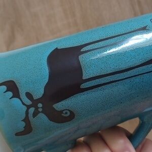 Produced by Arctic Circle, this 5.25" tall ceramic mug features the unique and delightful Alaska Leggy Moose. The exterior of the mug has a blue speckled glaze finish, the perfect backdrop for the dark leggy moose shaded with hints of brown. The interior is black. Alaska is written in lower case letters below the moose. The mug holds 14 oz. It is both microwave and dishwasher safe. Pre-owned and in very nice condition. Clean, smoke-free home.
